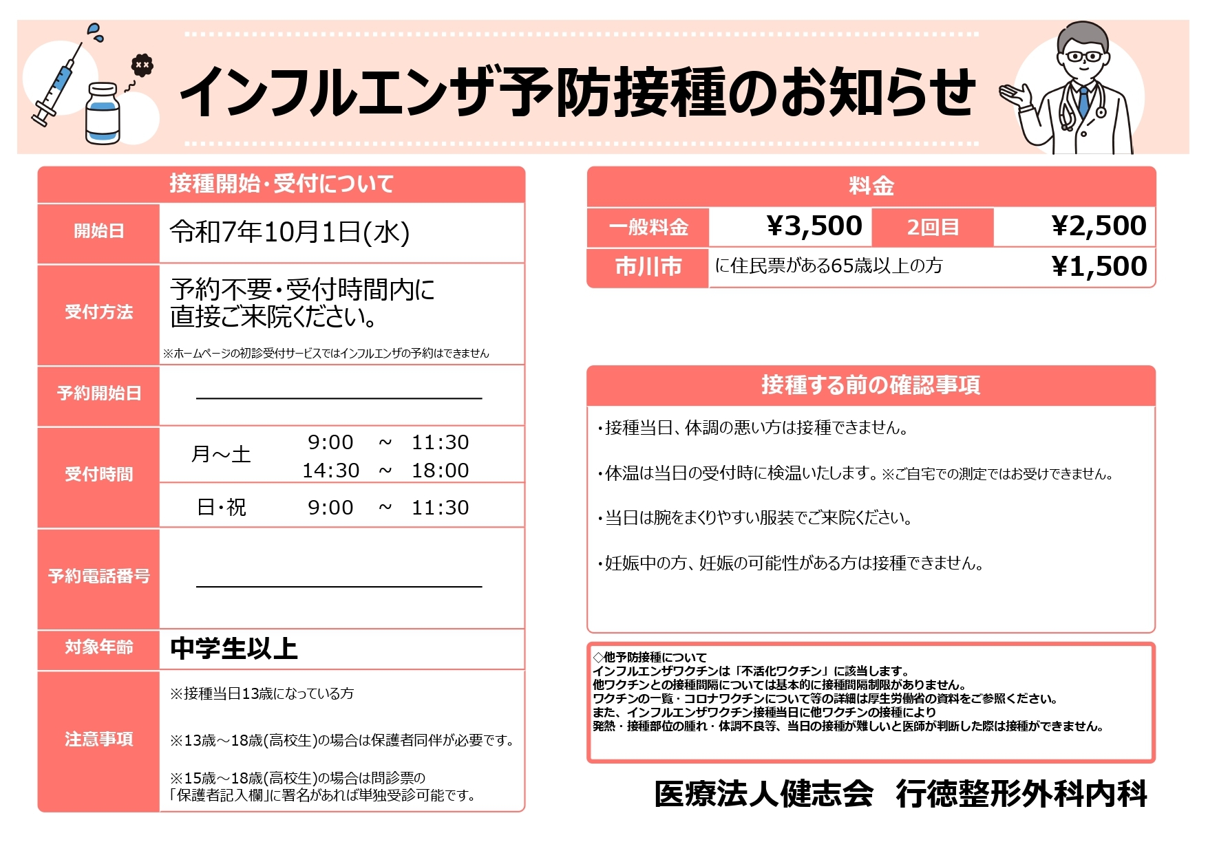 2025/9/19【お知らせ】令和7年度 インフルエンザ予防接種