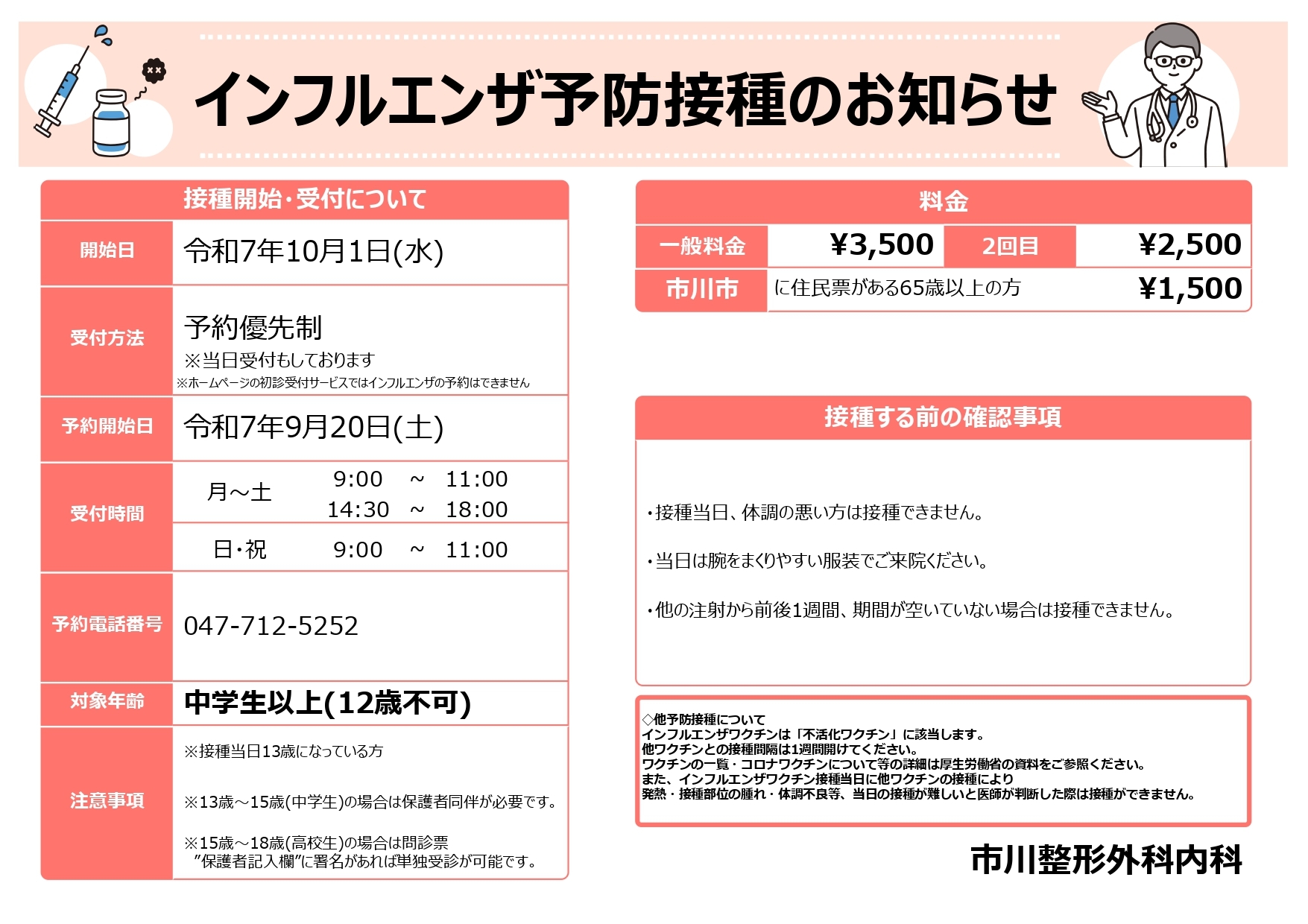令和6年度のインフルエンザ予防接種受付は終了いたしました。
