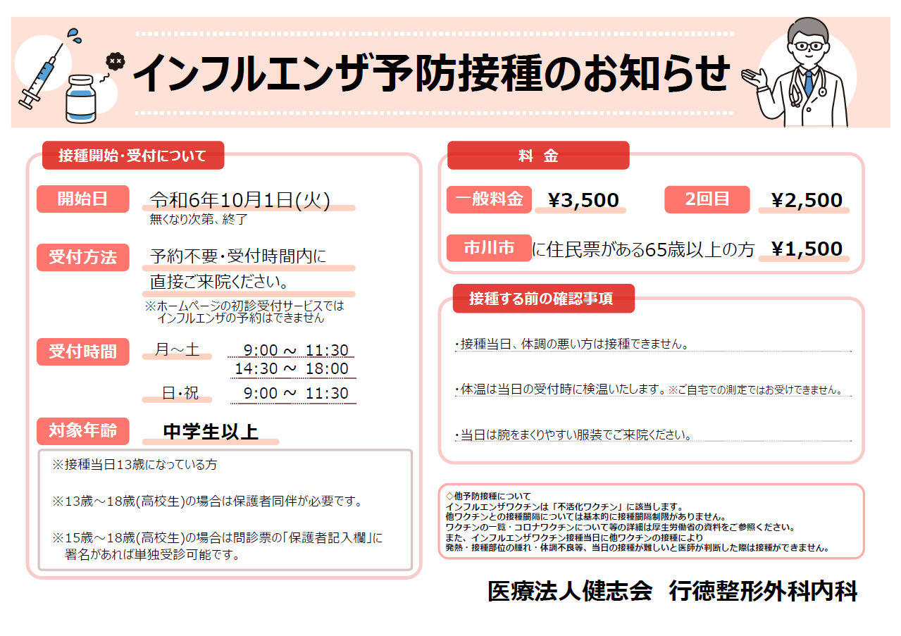 令和6年度のインフルエンザ予防接種受付は終了いたしました。