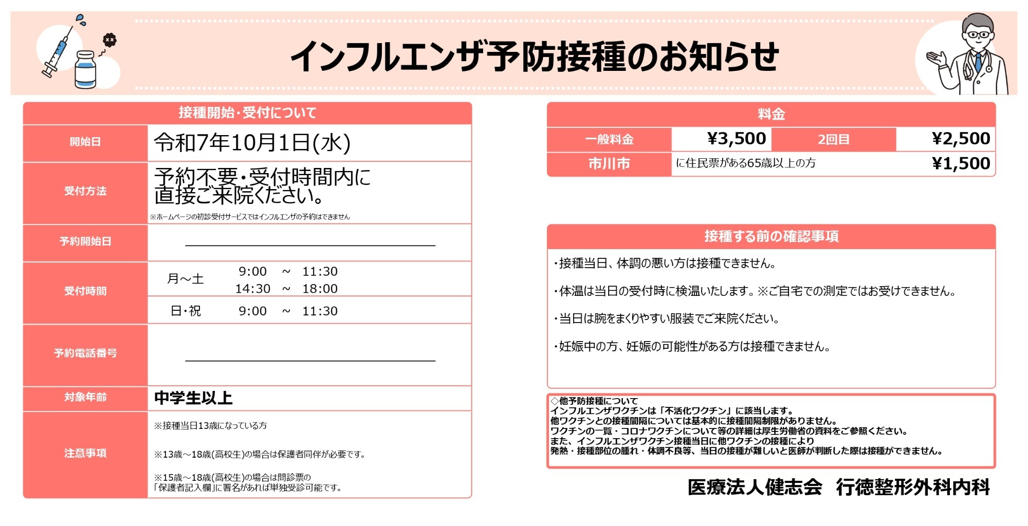 2025/9/19【お知らせ】令和7年度 インフルエンザ予防接種
