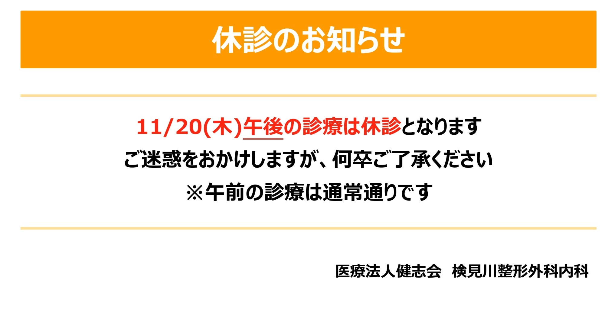 本日(R5.1/30)の診療は臨時休診とさせていただきます。