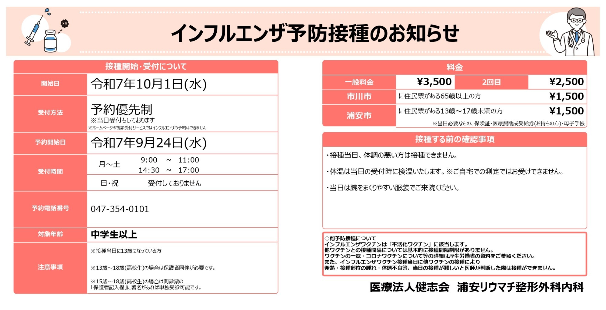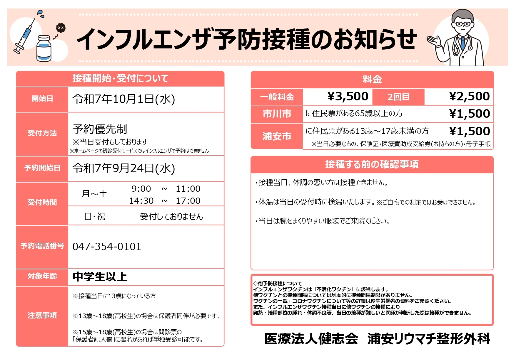 2023/9/27【お知らせ】令和5年度インフルエンザ予防接種のお知らせ